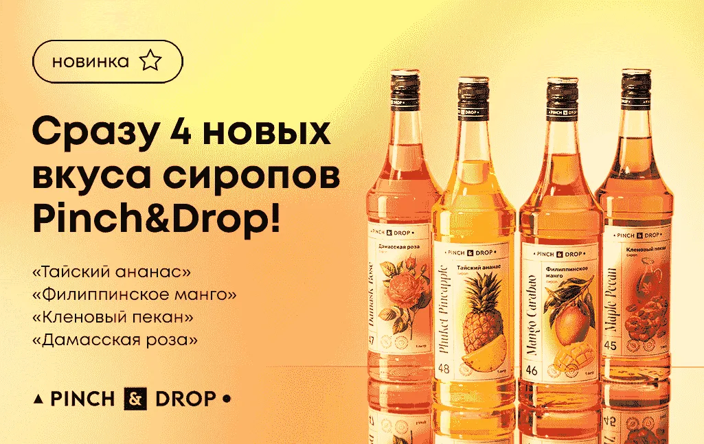 Pinch&Drop - это насыщенные яркие вкусы, тщательно подобранные натуральные ингредиенты и оригинальная рецептура сиропов, топпингов, пюре, концентратов и кордиалов! Каждый год линейка пополняется новыми вкусами, разработанными в современной оборудованной лаборатории. Компания всегда следит за самыми горячими мировыми трендами, чтобы вы могли создавать свои уникальные напитки и десерты! Вся продукция производится в Российской Федерации, в соответствии с самыми высокими международными стандартами качества.