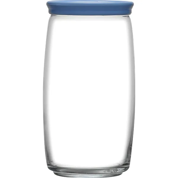 Банка «Чешни» круглая с крышкой стекло,пластик 1,5л D=94,H=200мм прозр.,синий