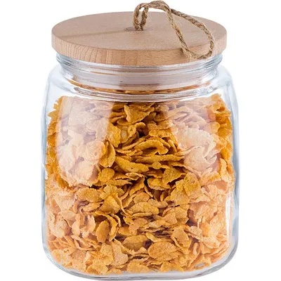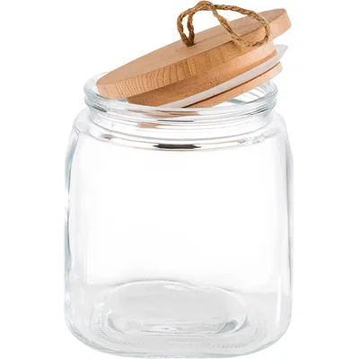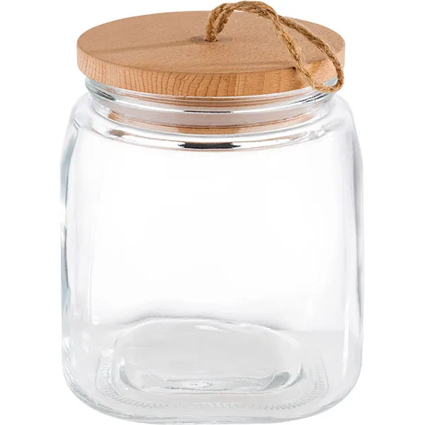 Банка «Вуди» квадратная с крышкой стекло,дерево 2л ,H=17,L=14,B=14см прозр.,бежев.