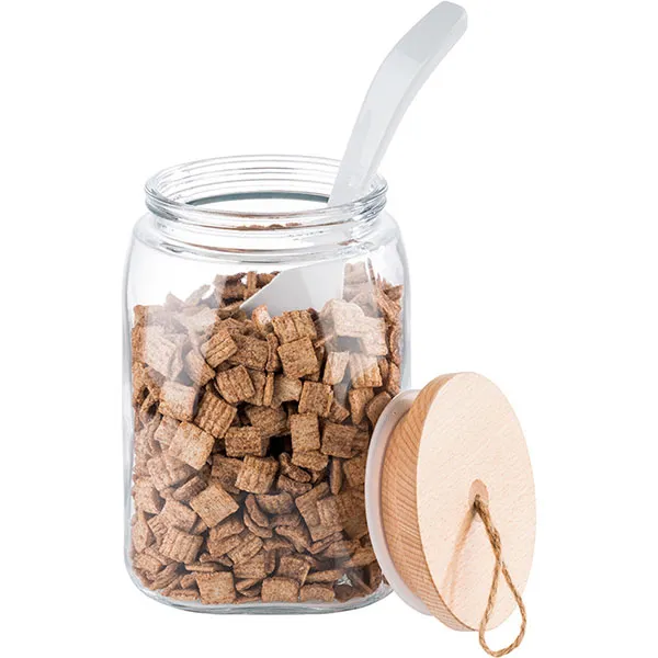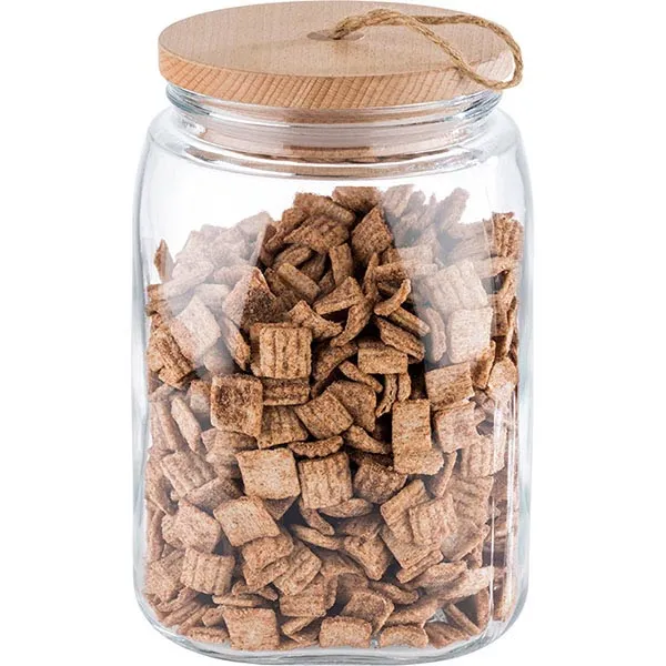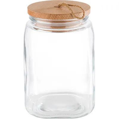 Банка «Вуди» квадратная с крышкой стекло,дерево 2,5л ,H=21,5,L=14,B=14см прозр.