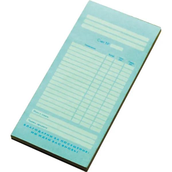 Бланк для счета «Официант» двухслойный самокопировальный бум. самокоп. ,H=7,L=200,B=95мм разноцветн.