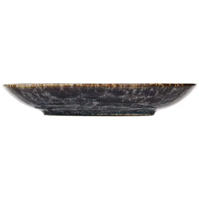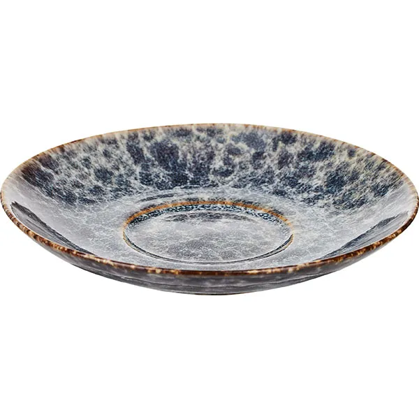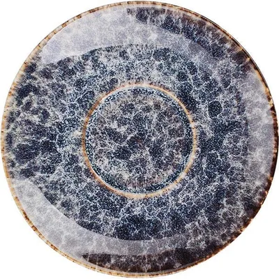 Блюдце из коллекции «Стоун» бренда Kunstwerk впечатляет своим оригинальным дизайном: фактурная глазурь в сине-сером исполнении имитирует поверхность природного камня. Матовая текстура и концентрический рисунок в центре создают эффект ручной работы и делают изделие выразительным элементом сервировки. Округлая форма диаметром – 62 мм обеспечивает надежное размещение чашки стандартного объема.
