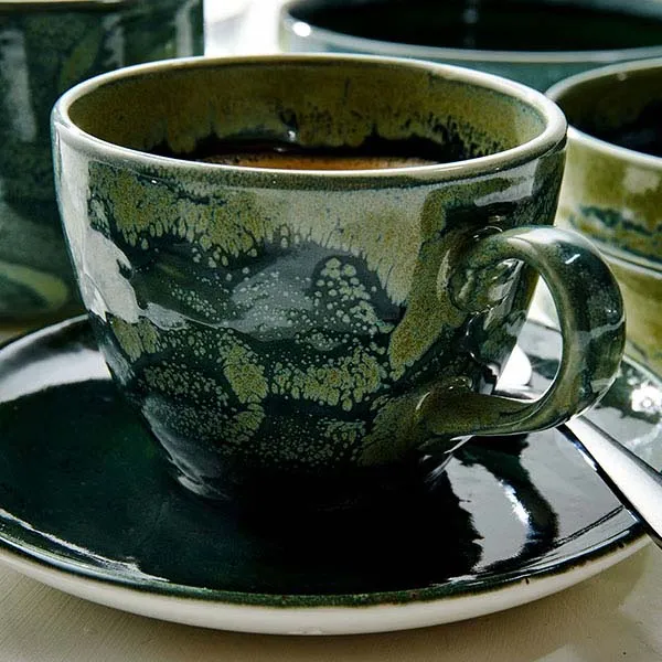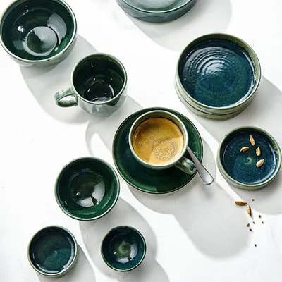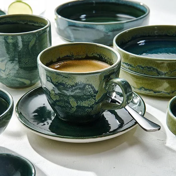 Блюдце «Аврора Везувиус Бернт Эмералд» фарфор D=150,H=17мм бежев.,зелен.