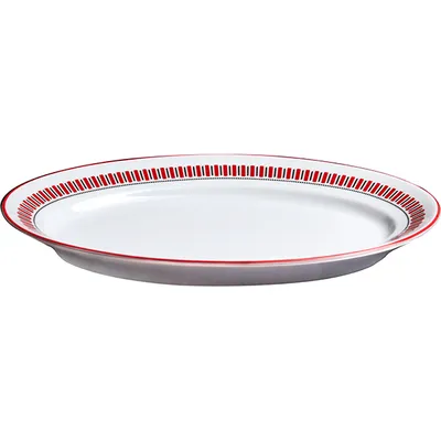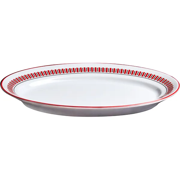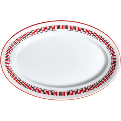 Блюдо «Мезень» Принц Заборчик овальное фарфор ,H=27,L=240мм белый,красный