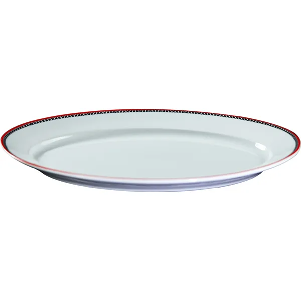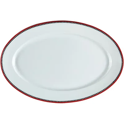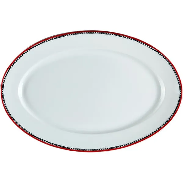 Блюдо «Мезень» Принц Крестики овальное фарфор ,H=28,L=310,B=210мм белый,красный