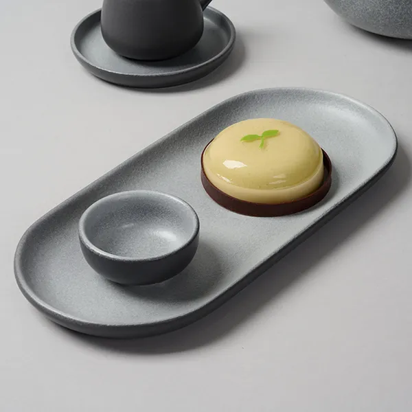 Блюдо для подачи «Сейко» бренда Kunstwerk – это воплощение азиатского минимализма, где красота кроется в чистоте линий и сдержанности. Модель выполнена из премиального фарфора с матово-серым покрытием, создающим тактильно приятную бархатистую поверхность. Его вытянутая овальная форма (28×13 см) с мягкими скругленными краями и низким профилем (высота – 2 см) привносит в сервировку спокойствие и гармонию.