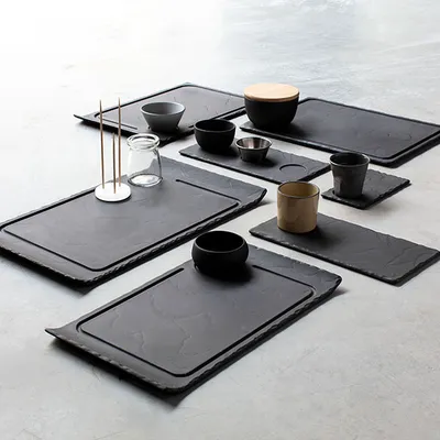 Блюдо для подачи «Базальт» керамика ,H=20,L=395,B=240мм черный