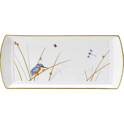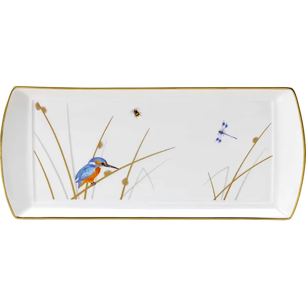 Блюдо для подачи «Рид» прямоугольное кост.фарф. ,L=34,B=15см белый,золотой