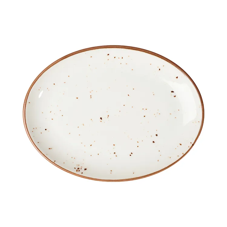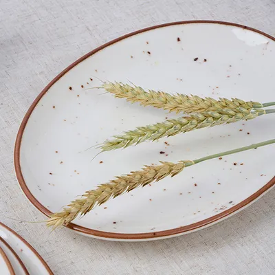 Размер тарелки – 25х19 см, форма овальная, без борта. В основе производства этой посуды лежит технология Hydro Zero™ – это комплексный подход к созданию фарфора нового поколения. Оптимизированный состав и контроль обжига обеспечивают повышенную стойкость к сколам и механическим воздействиям, что критически важно для активного использования в ресторанах. Также применена инновация HyGenie™ Inside: наделяет поверхность стойким антибактериальным эффектом, упрощая поддержание безупречной гигиены.