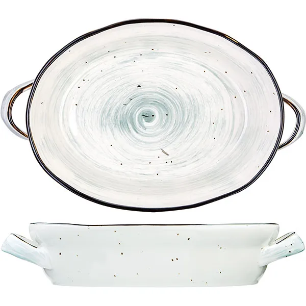 Форма для запекания «Пастораль» овальная с ручками фарфор 1,25л ,H=6,L=25,B=19см зелен.