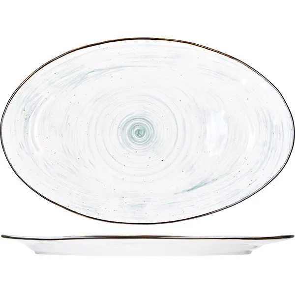 Блюдо «Пастораль» овальное фарфор ,H=25,L=405,B=255мм зелен.