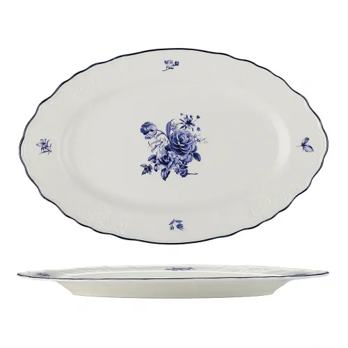 Блюдо овальное «Блю Флауэр» фарфор ,L=30,5,B=19см белый,синий