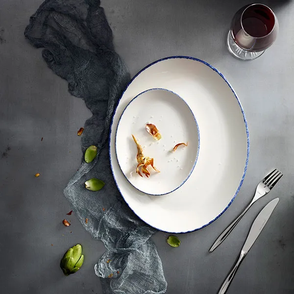 Блюдо «Блю Дэппл» овальное фарфор ,H=20,L=203,B=160мм белый,синий