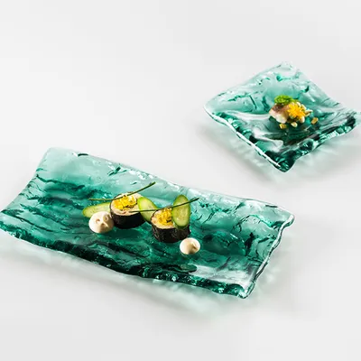 Блюдо сервировочное «Море» стекло ,L=15,B=14см зелен.