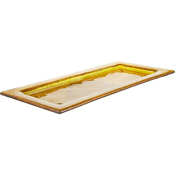 Блюдо сервировочное стекло ,H=15,L=350,B=150мм золотой,коричнев.