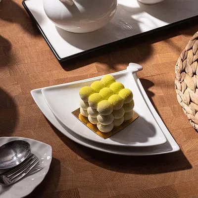 Блюдо «Кунстверк» веер фарфор ,H=15,L=200,B=130мм белый