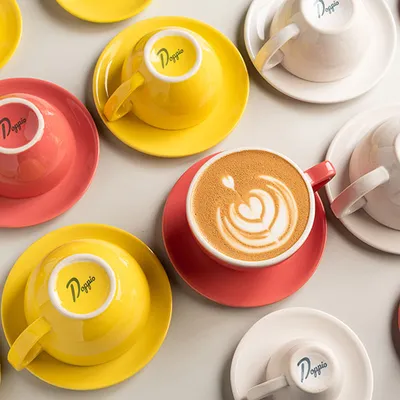 Чашка кофейная «Пур-Амор» фарфор 300мл D=110/60,H=65,L=140мм кораллов.,белый