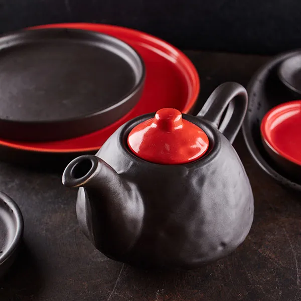 Чайник заварочный «Кармин» фактурный керамика 0,6л ,H=11,L=13см красный,черный