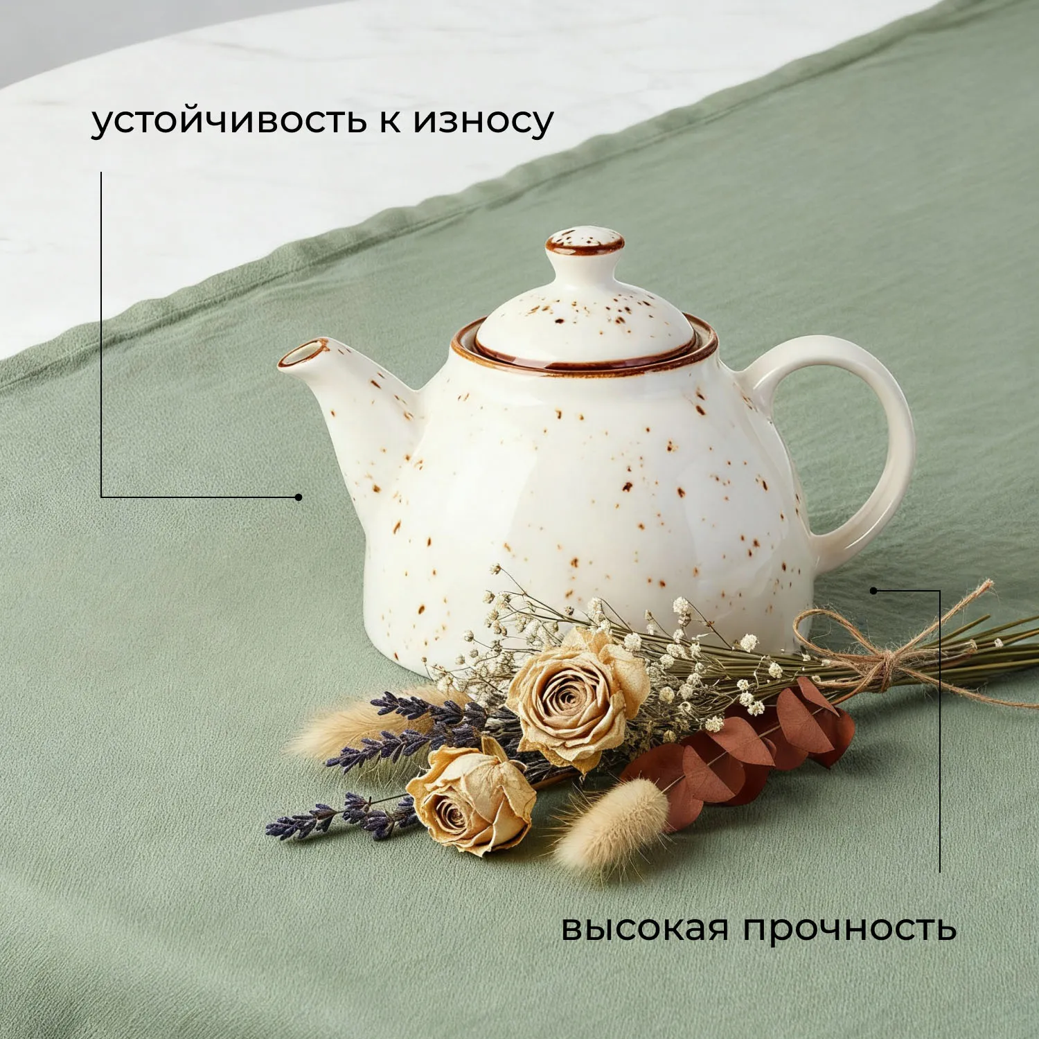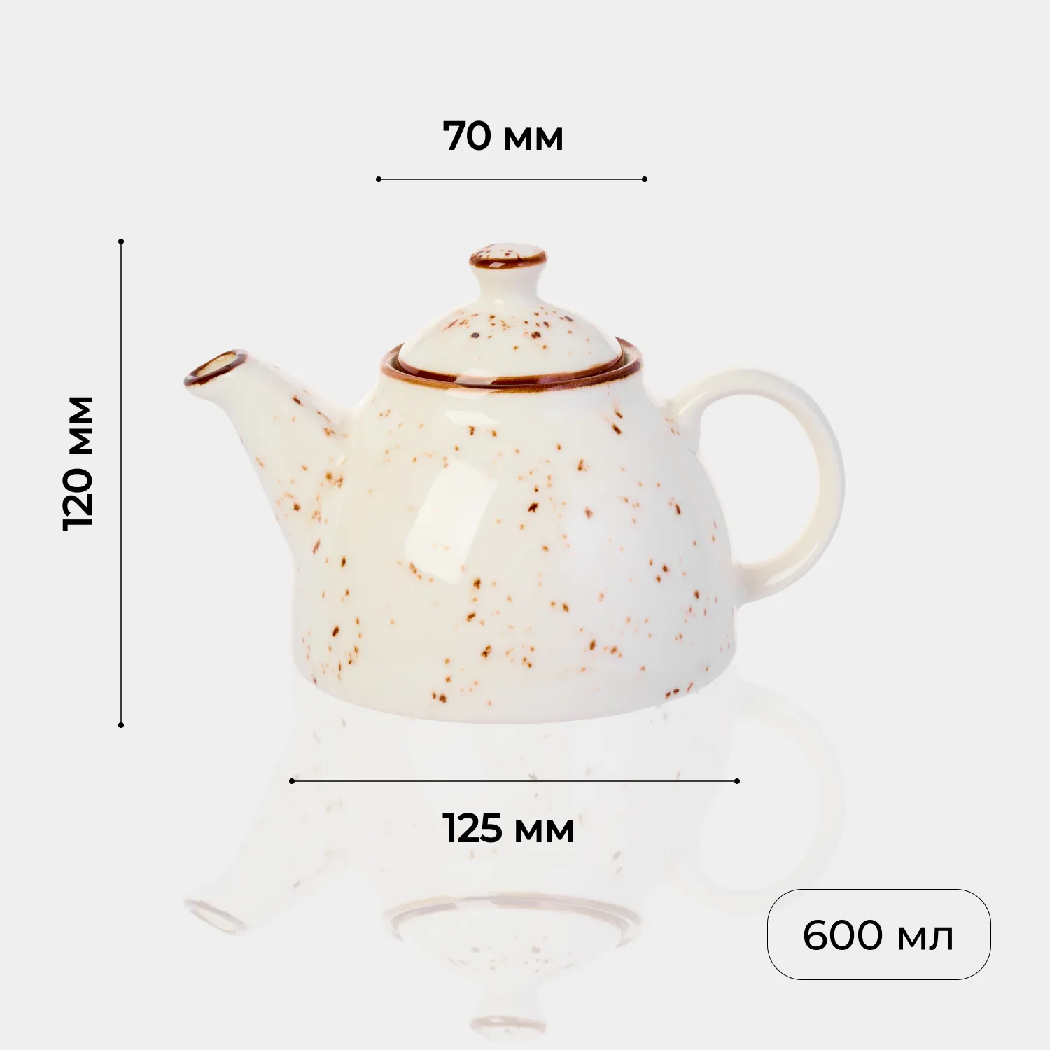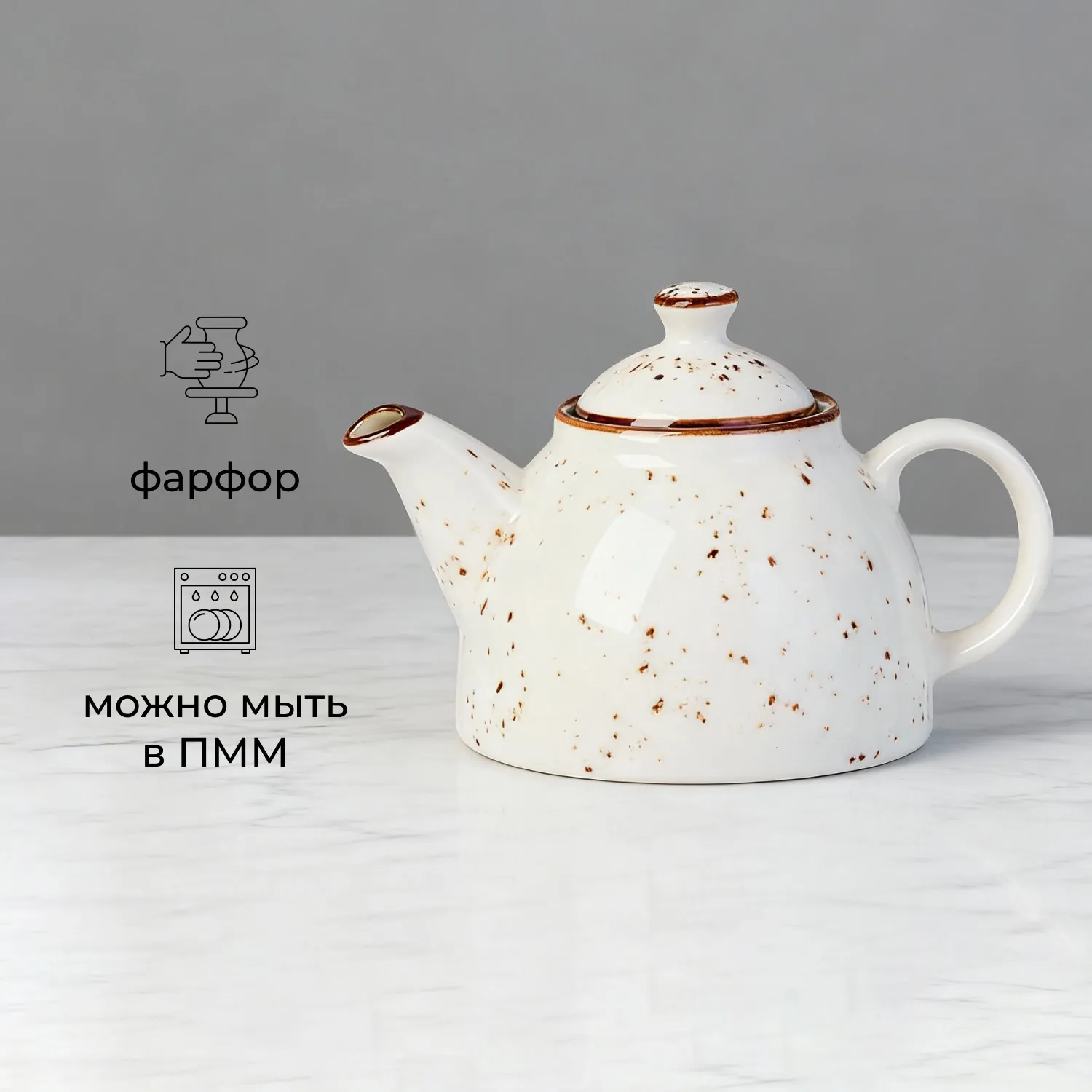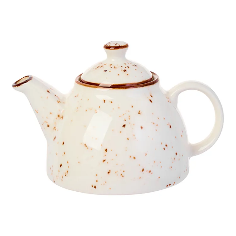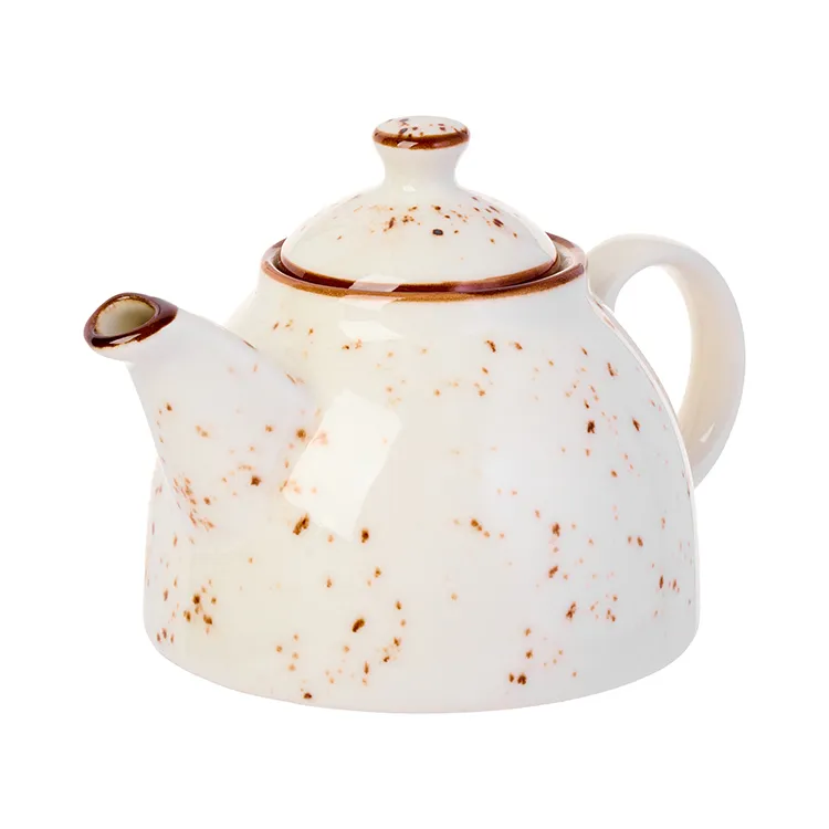 Чайник заварочный «Париж» бренда Kunstwerk – элегантное начало чайной церемонии. Модель выполнена из качественного фарфора с глянцевой поверхностью сливочно-белого оттенка, украшенной россыпью шоколадно-коричневых крапинок и тонким кантом по краям. Аутентичный дизайн с удобной ручкой и плотно прилегающей крышкой делает его не только стильным, но и функциональным.