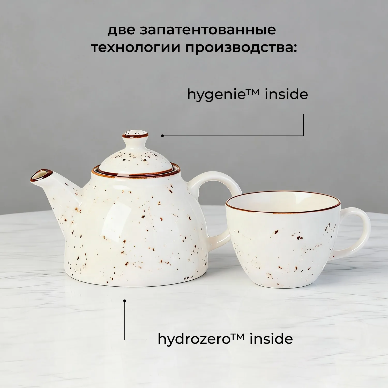 Объем – 0,6 л, рассчитан на 2-3 чашки. Фарфоровый чайник сохранит тепло и аромат напитка. Изделие создано по инновационным технологиям: Hydro Zero™ Inside и HyGenie™ Inside. Первая обеспечивает устойчивость к сколам, что важно для предмета, который часто передают из рук в руки. Вторая – гарантирует антибактериальную защиту внутренней и внешней поверхности, обеспечивая гигиеничность при каждом использовании.