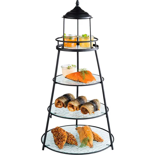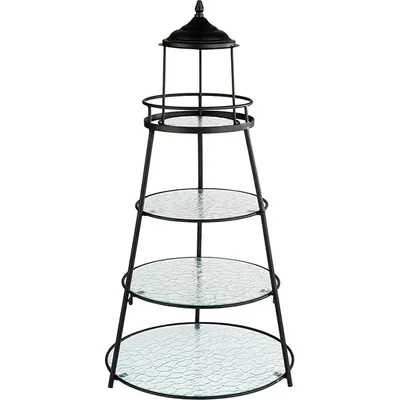 Этажерка 4 яруса D=12-20.5-25-30.5см металл,стекло ,H=62см черный,прозр.
