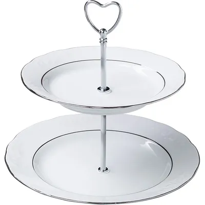 Этажерка «Надежда» 2 яруса фарфор D=24/20,H=22,5см белый,серебрян.