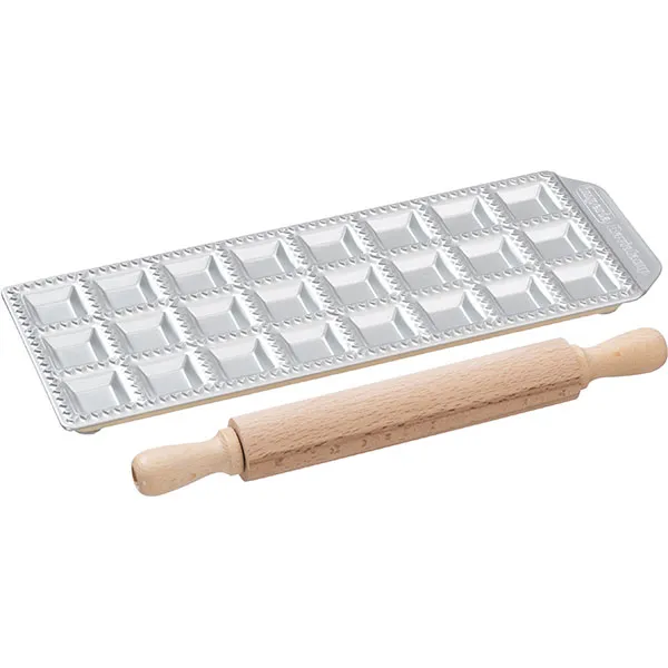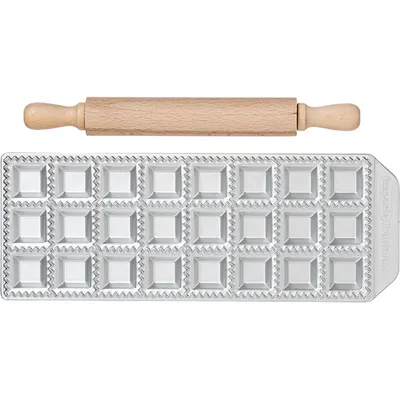 Форма для равиоли со скалкой 24 ячейки алюмин.,бук ,L=28,5,B=10см металлич.