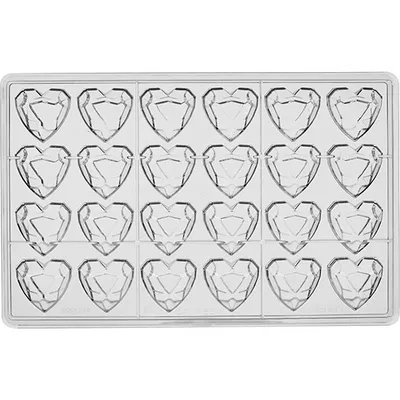 Форма для шоколада «Бриллиант сердце» [24 ячейки] поликарбонат ,H=26,L=275,B=175мм прозр.