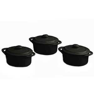 Кастрюля для запекания «Миньон» с крышкой[3шт] фарфор 60мл D=7см черный