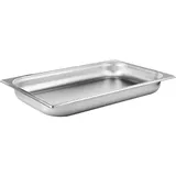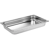 За счет легирующих добавок сталь не ржавеет, не окисляется от контакта с агрессивными компонентами блюд (соль, уксус и другие кислоты). Гладкую поверхность легко мыть. Материал не покрывается царапинами при работе. Объем гастроемкости 8,6 литра, размер 530×325 мм. Этот тип поддонов, емкости с ручками и другие товары для приготовления и подачи блюд можно заказать в нашем интернет-магазине.