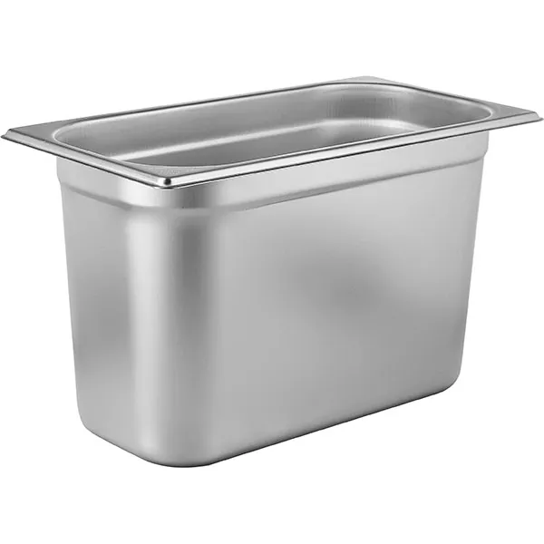 Производитель Prohotel предлагает гастроемкость из нержавеющей стали размера 1/3, что указывает на стандартизированную ширину и длину (17,6 и 32,5 см). Глубина контейнера - 20 см. Такие габариты создают объем в 6,8 литра. Такую емкость можно использовать для различных кулинарных задач. Ее легко разместить в любом кухонном оборудовании.