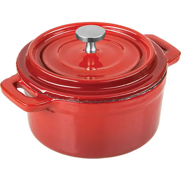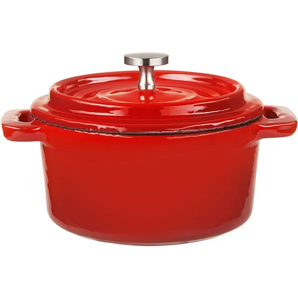 Кастрюля для запекания с крышкой чугун 250мл D=10см красный