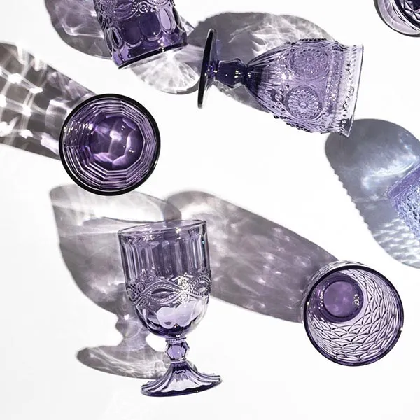 Стильные дизайнерские стаканы станут центральным украшением стола и идеально подойдут для ежедневной и праздничной сервировки. Их практичный дизайн подойдет для подачи на стол вина, виски, коктейлей, воды и сока. Бокалы имеют интересный декор и часто используются в ресторанах, барах, кафе. Набор фиолетовых стаканов станет дополнением домашней столовой коллекции и будут отлично сочетаться по стилю с набором классической посуды. Фужеры имеют компактный размер, не занимают много места для хранения.