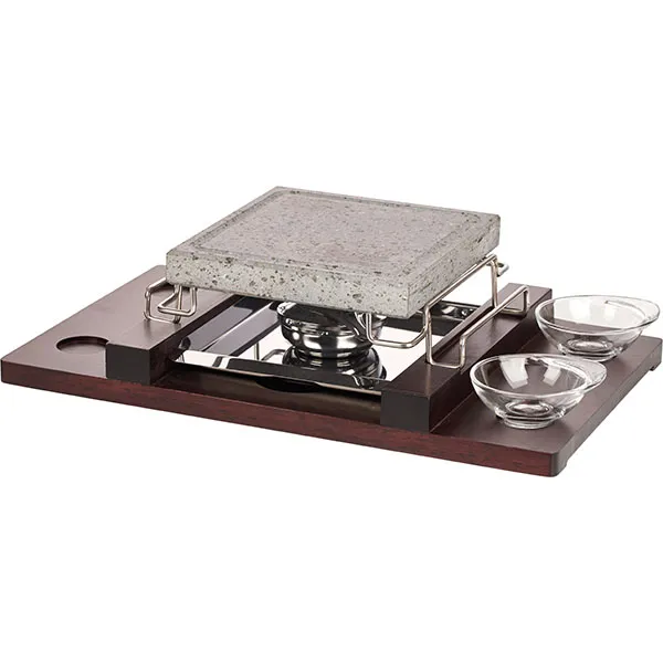 Камень д/подачи горячих блюд+подставка нат.камень лав.камень,сталь ,H=11,5,L=51,5/48,5,B=31см серый