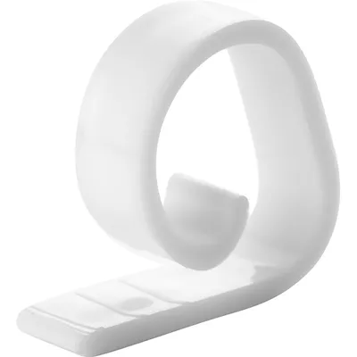Компактный и аккуратный зажим выполнен из белого пластика и имеет лаконичную форму с плавным изгибом. Размеры одной клипсы составляют 36×30 мм, что делает его практически незаметным на поверхности, сохраняя эстетику сервировки.