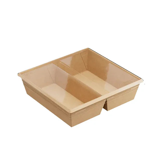 Контейнер бумажный OneClick 2 секции картон 1,2л ,H=55,L=190,B=200мм св.корич.