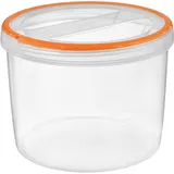 Контейнер для продуктов изготовлен из пищевого полипропилена – прозрачного и прочного материала. Это пластиковое изделие не боится ударов и механической нагрузки, устойчиво к царапинам, поэтому емкость прослужит долго. Полипропилен инертный, выдерживает низкие и высокие температуры.