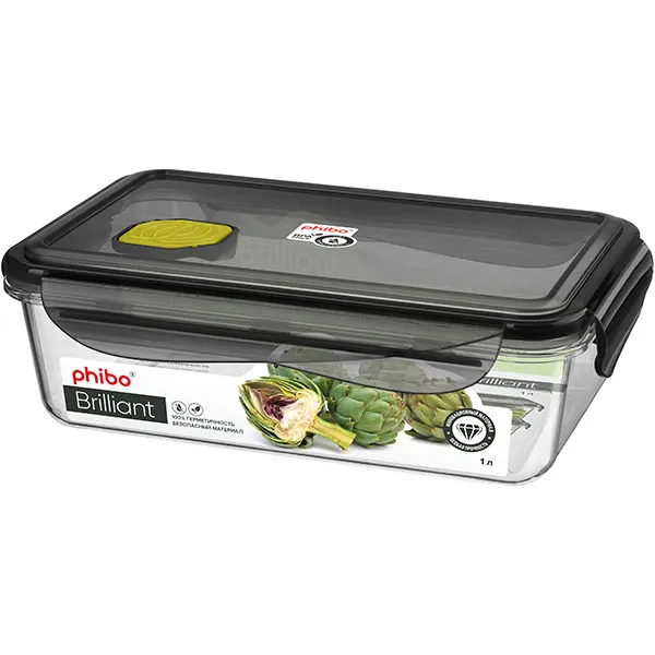 Контейнер для продуктов крышка герметичная с клапаном тритан 1л ,H=65,L=225,B=135мм прозр.,черный