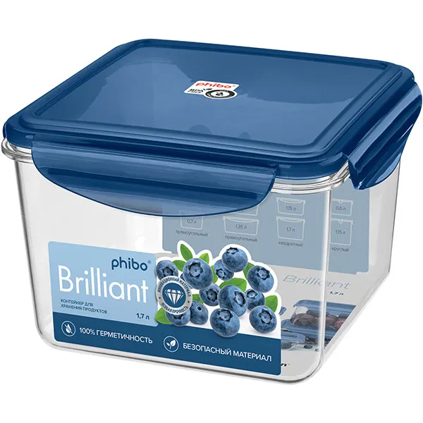 Контейнер для продуктов «Бриллиант» с герметичной крышкой тритан 1,7л ,H=11,1,L=16,B=16см прозр.,син