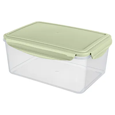 Пластиковый контейнер оснащен крышкой с надежным замком, она предотвращает проникновение воздуха и влаги, защищая содержимое. Прямоугольная форма с размерами 23,5х16,8х10,5 вмешает 2,5 л. Такой объем подходит для хранения большого количества продуктов и 10-15 порций готовой еды.