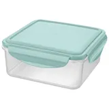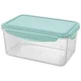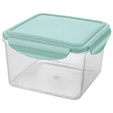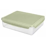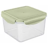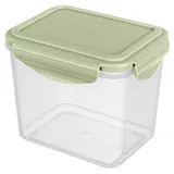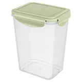 Прозрачные стенки дают мгновенный обзор содержимого. Нежно-зеленая крышка с четырьмя защелками формирует плотный обод, отвечая за полную герметичность. Встроенный силиконовый уплотнитель сохраняет аромат. А усиливающие ребра придают контейнеру дополнительную прочность и устойчивость.