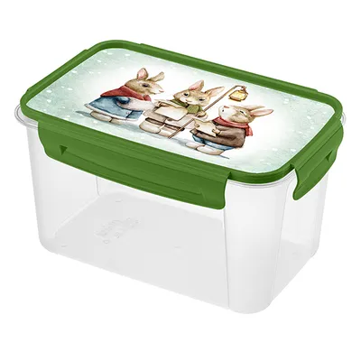 Контейнер для продуктов «Зайки» с крышкой полипроп. 1,5л ,H=10,5,L=18,6,B=12,2см прозр.,зелен.