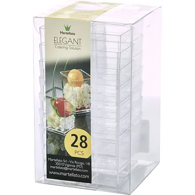 Креманка квадратная набор[28шт] полистир.пищ. 60мл ,H=55,L=40,B=40мм прозр.