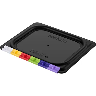 Restola предлагает крышку прямоугольной формы для гастроемкости стандартного размера – GN 1/6 (162 × 176 мм). Крышка изготовлена из прочного черного полипропилена. Материал придает ей прочность и устойчивость к перепадам температур. Его поверхность легко очищается. Крышка имеет слегка приподнятый край, который обеспечивает надежное крепление к контейнеру.