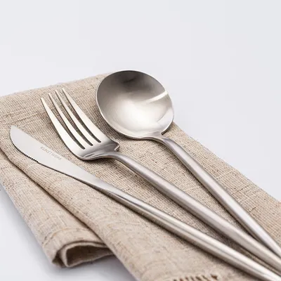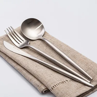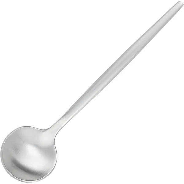 Ложка изготовлена из стали AISI 304. Это обеспечивает высокую коррозионную стойкость и безопасность при контакте с пищей. Нержавеющая сталь придает изделию прочность и долговечность. Матовая отделка защищает от царапин и отпечатков пальцев. Это сохраняет эстетику даже при частом использовании. Для сохранения целостности покрытия рекомендуется ручное мытье.