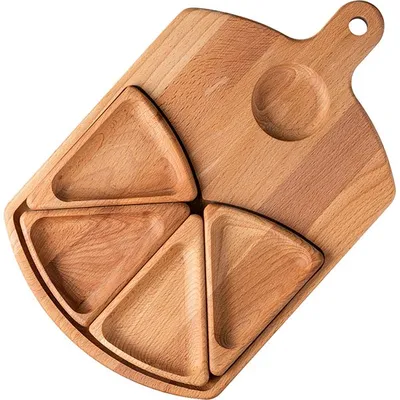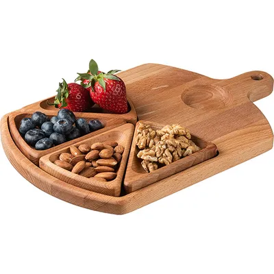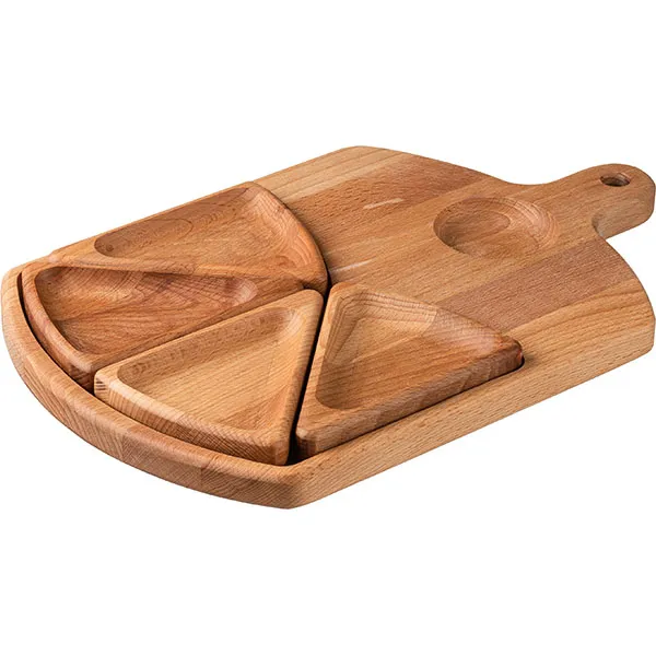 Менажница 5 секций с ручкой бук D=60,H=25,L=350,B=250мм св. дерево
