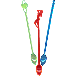 Мешалки для коктейлей «Ассорти с ложечкой»[50шт] пластик ,L=20см разноцветн.