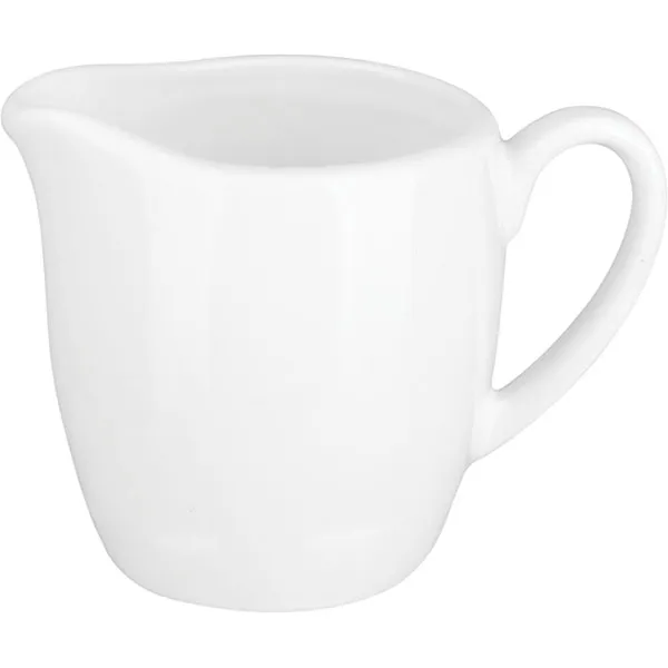 Объем посуды 50 мл, высота стенок 50 мм. Предусмотрена удобная ручка и небольшой носик для удобного добавления содержимого молочника в напитки.
