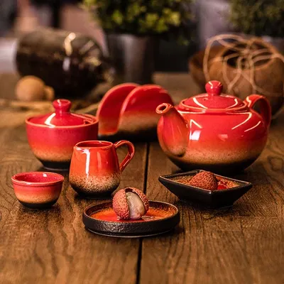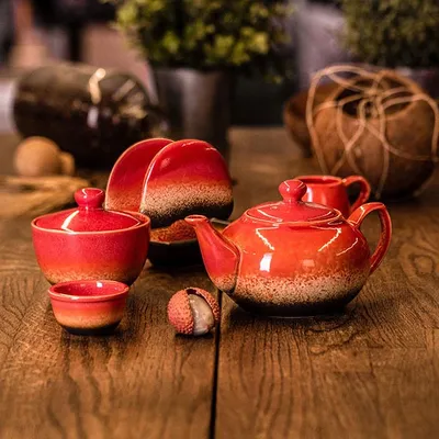 Молочник «Агат» фарфор 90мл D=40,H=60,L=85,B=40мм красный