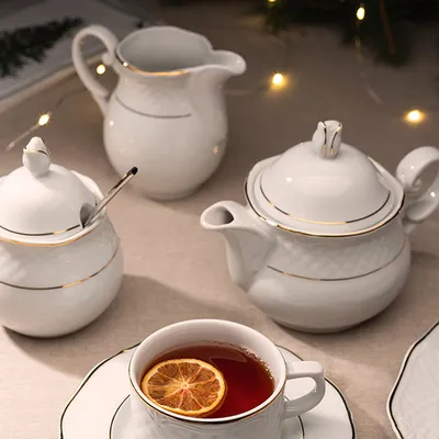 Молочник «Афродита» фарфор 300мл D=60,H=105,L=130мм белый,золотой